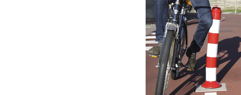 Maar de grootste innovatie zit in de flexibiliteit van de paal. Doordat de paal bovenaan meebuigt, absorbeert die de schokken bij aanrijding en zo wordt de kans op een letsel voor de fietser kleiner.