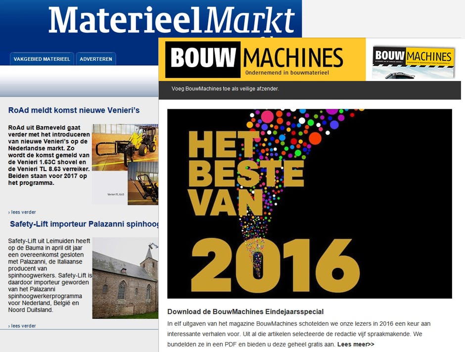 BIM Media, de uitgever van de Materieelkrant, is overgenomen door Vakmedianet. En laat dat nu net de uitgever zijn van onze conculega Bouwmachines, een 11 keer per jaar verschijnend materieelvakblad met een uitstekende reputatie, een dito website (www.bouwmachines.nl) en een veelgelezen nieuwsbrief, die U uitgebreid(er) informeert over alles dat gaande is op materieelgebied.
