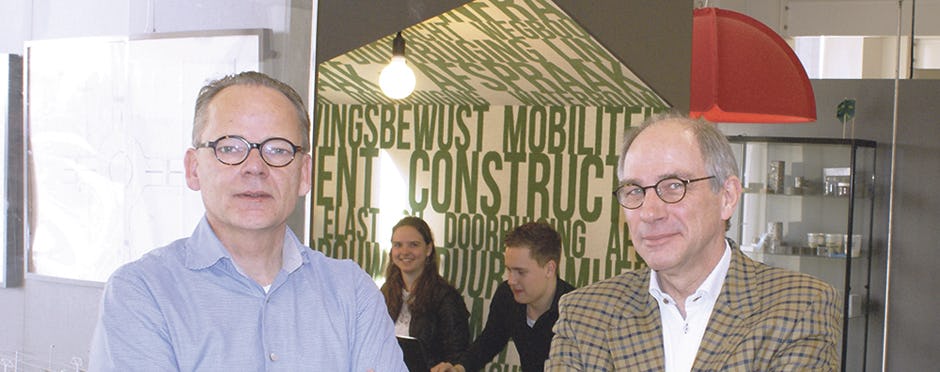 Voor wie weet dat er hier op de campus dagelijks een paar duizend studenten rondlopen heerst er een serene rust op de gang waar docenten civiele techniek, Harry Dommershuijzen en William Kuppen kantoor houden. De gang oogt eerder als een hip koffietentje dan als een hogeschool: studenten zitten op felgekleurde bankjes achter hun laptops op fluistertoon met elkaar te overleggen. Vanuit de aanpalende lokalen klinken alleen de stemmen van docenten die iets uitleggen en af en toe een vraag van een student. Kuppen en Dommershuijzen blijken in hun nopjes met hoe het is gesteld met het onderwijs aan hun hogeschool. Dommershuijzen: “Over het algemeen durf ik wel te stellen dat we het best goed doen. Er is behoefte aan de mensen die we opleiden. Onze afstudeerders winnen met regelmaat een prijs.