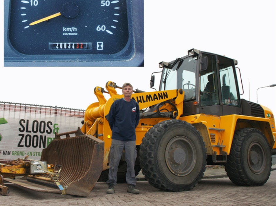 Machinist Leo Compeer zette begin maart het respectabele aantal van twintigduizend uur op de teller. Reden voor verkoopadviseur Peter Reeuwijk om hem te feliciteren en op taart te trakteren. Vanaf de aflevering in 2004 draait hij jaarlijks bijna 1700 uur op zijn zwenklader.