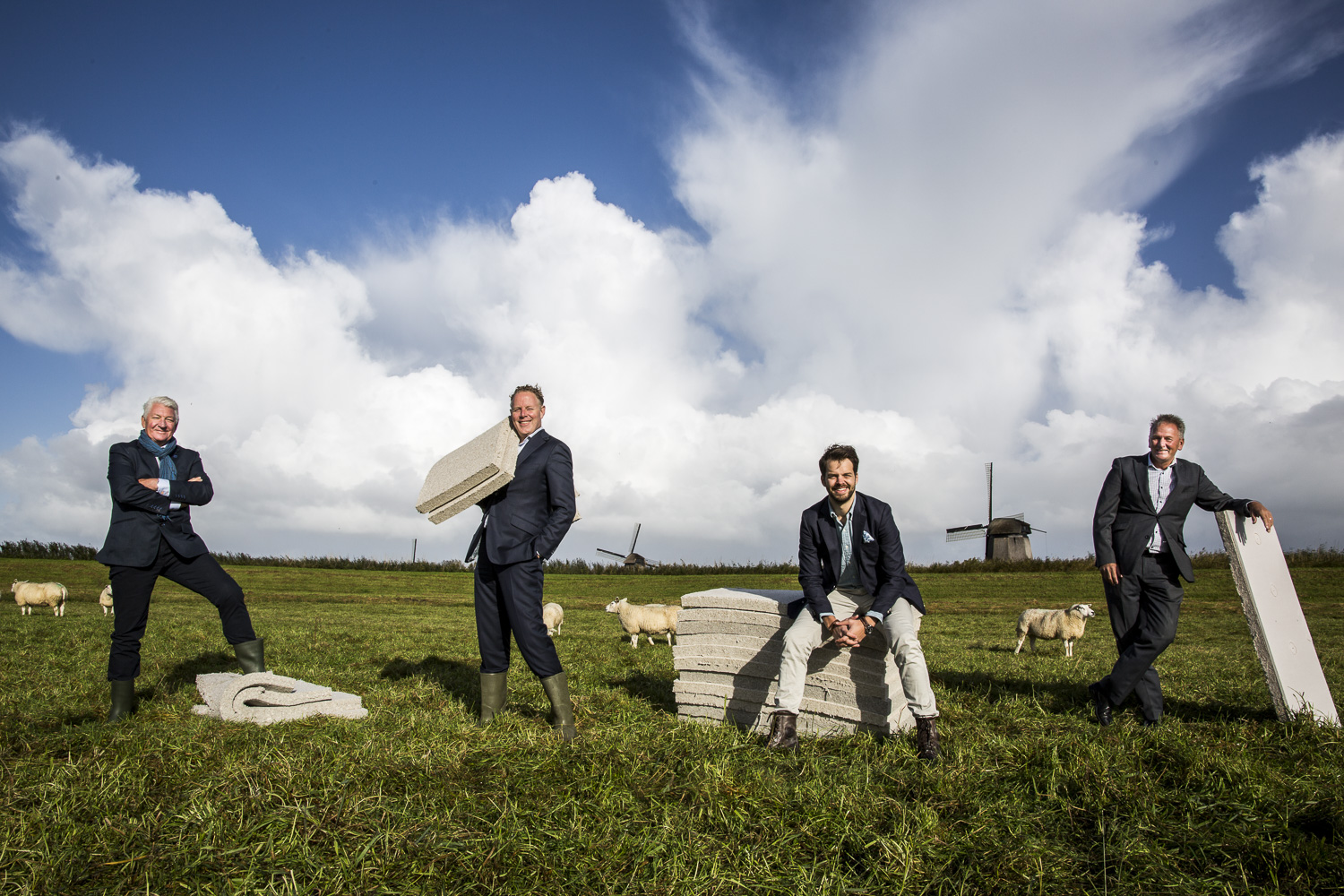 Als heel Nederland overstapt op circulaire isolatie moeten we nog vijftien van dit soort productielijnen neerzetten, “ stelt Van der Heijden optimistisch, terwijl hij zijn blik laat glijden over de compacte installatie in de bedrijfshal in Sneek. “Liefst verspreid over het land, natuurlijk want in het circulaire gedachtengoed ga je niet het hele land doorrijden. Al is dat altijd beter dan dat je de materialen uit China te laten komen.” Plannen voor internationale expansie heeft het viertal ook. Maar daar willen ze nog niet teveel over kwijt.