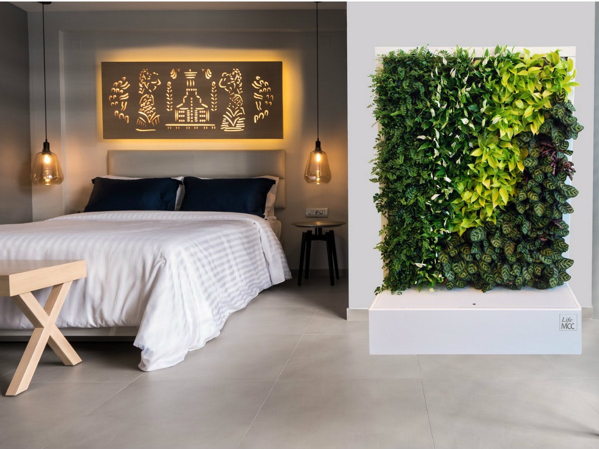 MCC staat voor Movable Climate Changer. De mobiele, groene gevel is beschikbaar is drie verschillende soorten plantassortimenten. In elk plantassortiment zijn sowieso planten opgenomen met luchtzuiverende kwaliteit. De planten zorgen voor een gezonde leef- en werkomgeving. Planten zuiveren immers niet alleen de lucht, maar zorgen ook voor meer zuurstof. Bovendien absorbeert beplanting geluid. De plantenwand is eenzijdig beplant. De LifeMCC is voorzien van een geïntegreerd waterreservoir en een automatisch irrigatiesysteem.