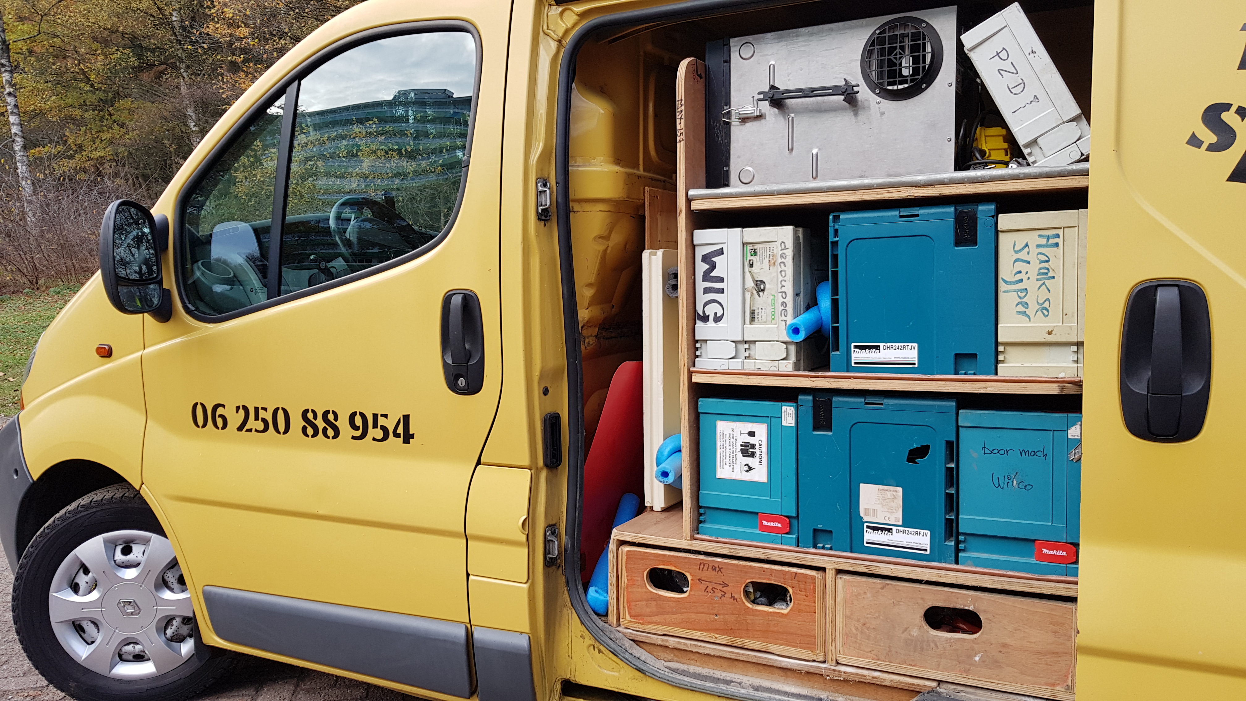 Het was een noodgedwongen stap om als voormalig directeur van een drukkerij de bouwwereld in te stappen. Hij begon met een klusbedrijf. Tót hij de eigenaar ontmoette van een isolatiemethode. Sindsdien duikt de nu 71-jarige Wilco Machielse met plezier de kruipruimte in om woningen te voorzien van vloerisolatie. Zijn mobiele gereedschapskist is een knalgele Renault Trafic 1.9 DCI L2H1 uit 2005. Wilco vertelt het verhaal achter zijn bouwbus.