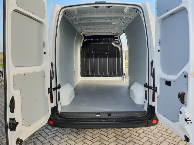 Renault levert de Master Z.E. in alle carrosserieversies die al verkrijgbaar waren met voorwielaandrijving. Logisch omdat de elektromotor de voorwielen aandrijft. In dit geval gaat het om een lengte drie en hoogte twee (L3H2) variant waarvan de laadruimte kan worden bereikt via twee deuren in de achterwand en aan de rechterkant ook via een forse schuifdeur. Omdat de batterij volledig onder de vloer is geplaatst, is het laadvolume identiek aan de Master met dieselmotor.