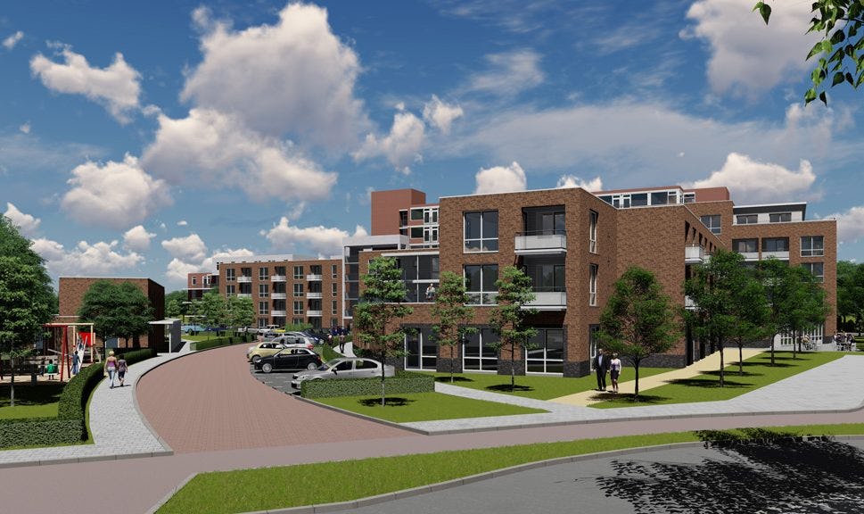 Bouwen van 96 zorgwoningen voor mensen met dementie bij de Overijsselseweg in de wijk Goutum-Súd, plan 'Zuidlanden'. Van buitenaf zal de nieuwbouw eruit komen te zien als normale eengezinswoningen in dezelfde stijl als de omliggende bebouwing.