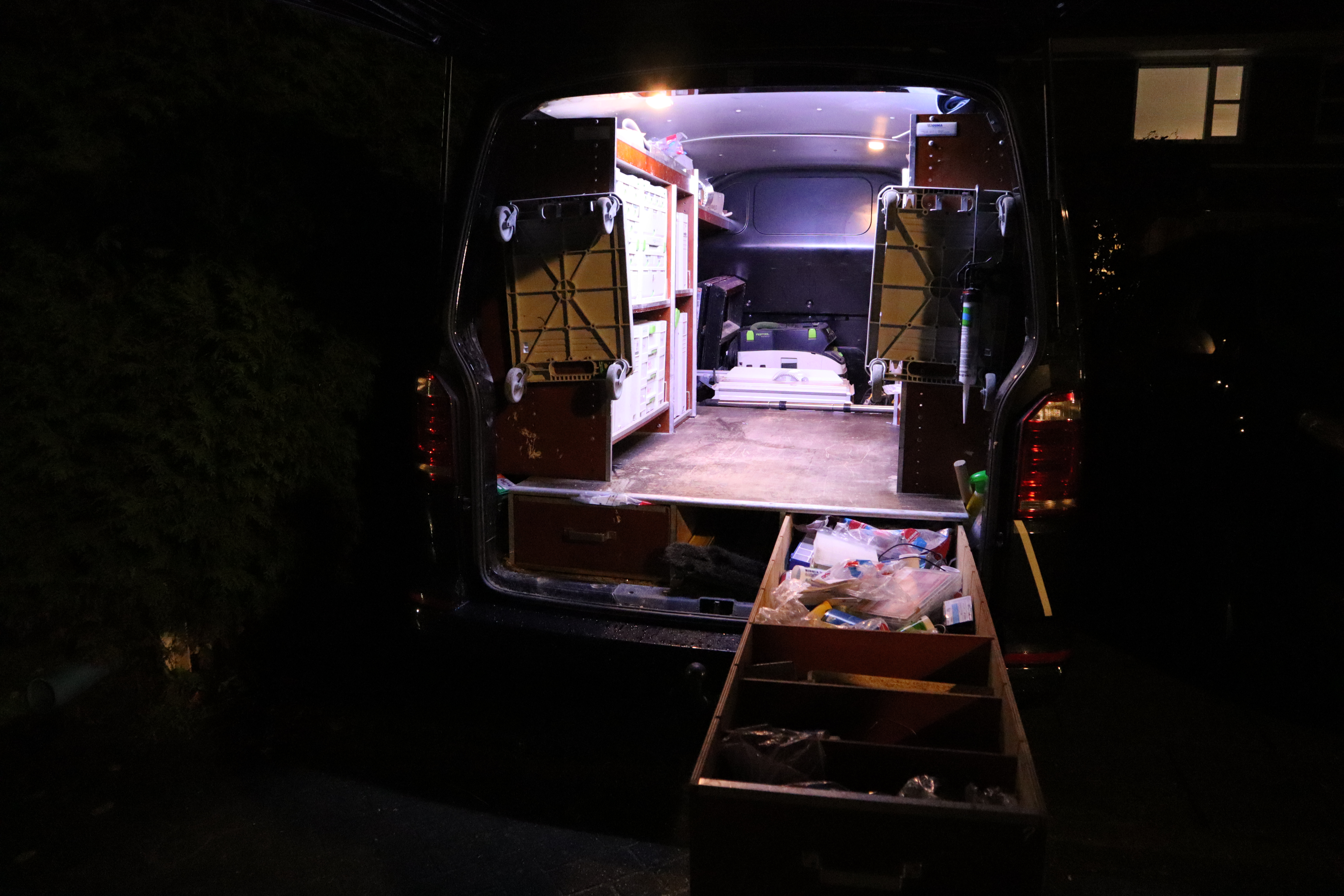 “Ik moest alles in werking zetten om een nieuwe bus te regelen. Dat ging niet vanzelf, maar gelukkig kreeg ik alle medewerking van mijn garage. Met een tijdelijke bus en een vergoeding van mijn gereedschapsleverancier kon ik in ieder geval door, terwijl ik wachtte op mijn nieuw bestelde Transporter. Ditmaal koos ik voor een exemplaar met een dubbele cabine, die ik ook privé zou gaan rijden. Ik dacht: handig voor mijn gezin, zodat de 8-zits privéauto plaats kon maken voor een kleinere variant. Uiteindelijk zijn we er maar één keer met zijn allen in weggeweest. De achterbank diende vooral als verlengstuk van mijn laadruimte. En dus ruilde ik ‘m na vier jaar met net geen twee ton op de teller in voor mijn huidige T6. Ik heb bewust gewacht tot het nieuwste model uitkwam.”