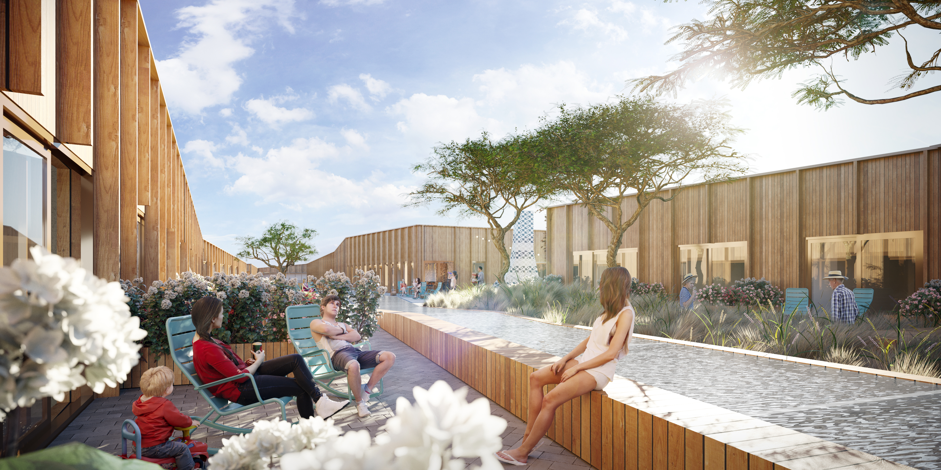 Het wooncomplex krijgt straks ook zogenaamde ‘community managers’: een team dat fungeert als verbindende kracht tussen de bewoners, de ondernemers en de buurt. Dit team zorgt niet alleen voor technische ondersteuning, maar kan bijvoorbeeld ook oppas of een strijkservice voor bewoners regelen. Op een gezamenlijke app komen onder meer een evenementenkalender, een berichtenbord en functies om met medebewoners te chatten of te mailen.