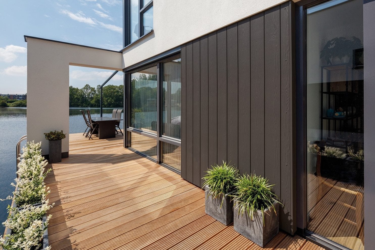 Nieuwbouw of renovatie? Met Cedral-stroken zijn de mogelijkheden bijna eindeloos. De sidings zijn verkrijgbaar in een brede waaier van 22 standaardkleuren, telkens met een houtnerfstructuur (Wood) of een licht getextureerde afwerking (Smooth). Zodra ze zijn geplaatst, kunnen ze eenvoudig met een sopje worden gereinigd. Bovendien hoef je de stroken niet te (her)schilderen, aangezien ze meerdere verflagen hebben gekregen tijdens het productieproces.