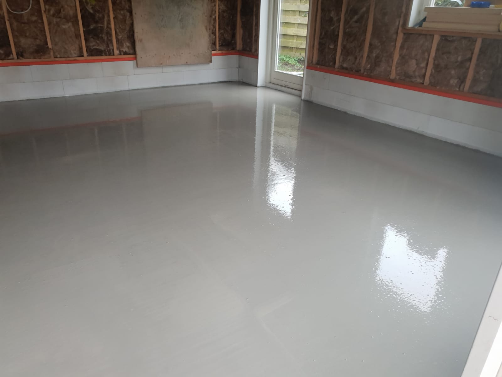 Voordat de Kompozyt Floor wordt aangebracht, worden alle radiotoren en CV-ketels verwijderd, evenals oude vloeren. Kompozyt wordt in een laagdikte van circa drie centimeter aangebracht op een behoorlijk vlakke en geïsoleerde werkvloer (liefst een lichtgewicht schuimbetonvloer). De Kompozyt Floor wordt met behulp van geautomatiseerde mobiele pompen aangebracht. Een Kompozyt Floor wordt geleverd mét gasloze vloerverwarming. Strooper: “De verwarmingsbron moet je zien als één geheel.”