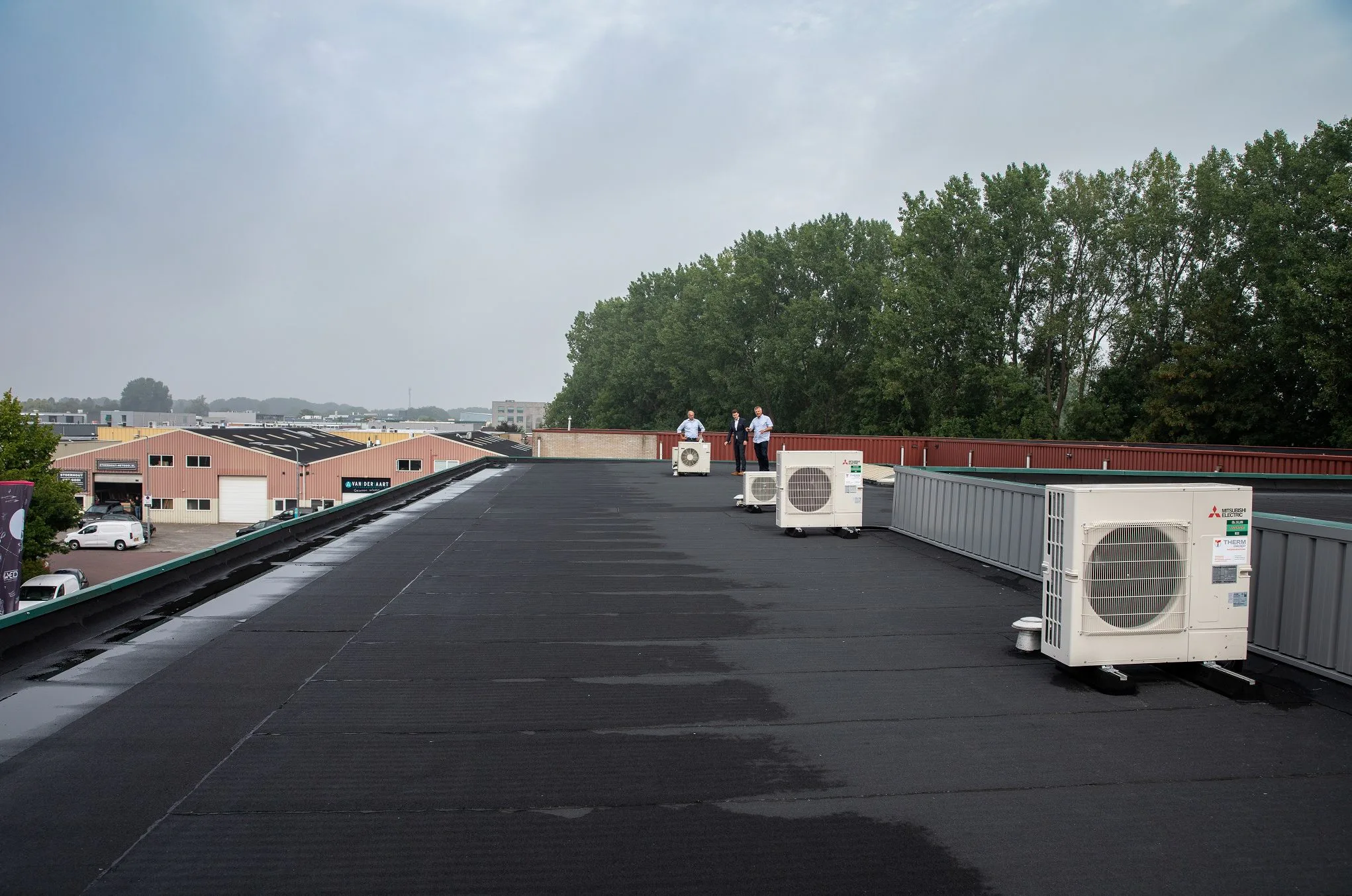 De vierzijdige cassettes die de ruimten van warme of koude lucht voorzien, worden gevoed door drie warmtepompen op het dak. “De nieuwe installatie is voorzien van koelmiddel R32”, zegt Hilhorst. “Een milieuvriendelijke oplossing, klaar voor de toekomst. Het gaat om de Mr. Slim R32 lijn, gecombineerd met vierzijdige cassettes in de ruimten. Dat zorgt voor een gelijkmatige koeling en verwarming.” De installatie was niet heel spannend, vindt Van Heijst: “We zitten al tientallen jaren in de koeltechniek en werken voor misschien wel 95 procent met Mitsubishi Electric. Dat zijn topproducten die je ook goed kunt monteren. Er is duidelijk over nagedacht.”