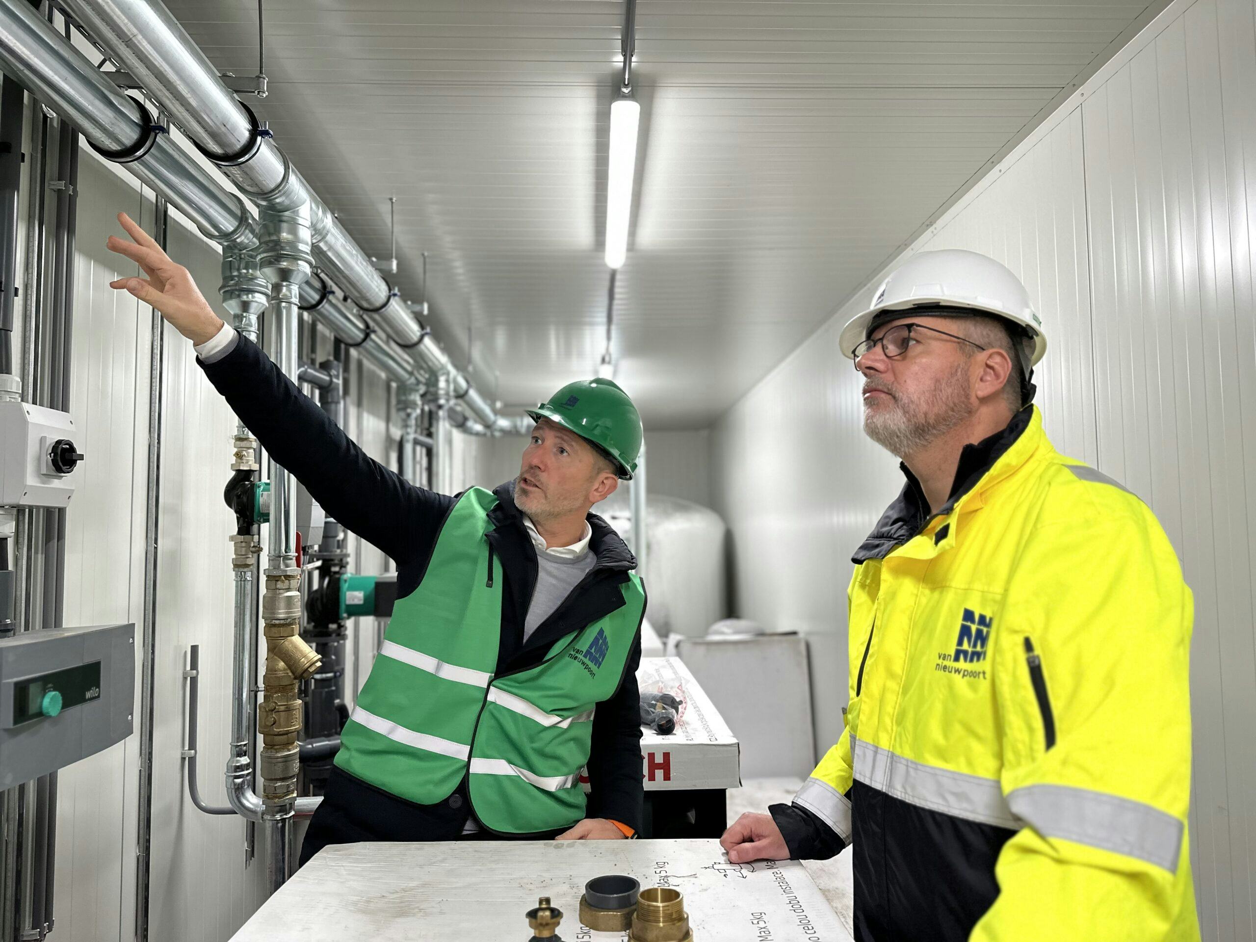 Van Tintelen vertelt dat recent is geïnvesteerd in de ribcassettefabriek. Ook hier is verder verduurzaamd met warmtepompen. Daarbij wordt slim gebruikgemaakt van de watertemperatuur van de naastgelegen rivier de IJssel. Warmtewisselaars onttrekken de energie uit het water. “Het gasloos produceren van onze prefabbetonvloeren is uniek in Nederland. Ook de Van Nieuwpoort Prefab Beton fabriek in Amsterdam wordt voor de baanverwarming van de kanaalplaatvloeren volledig gasloos.”