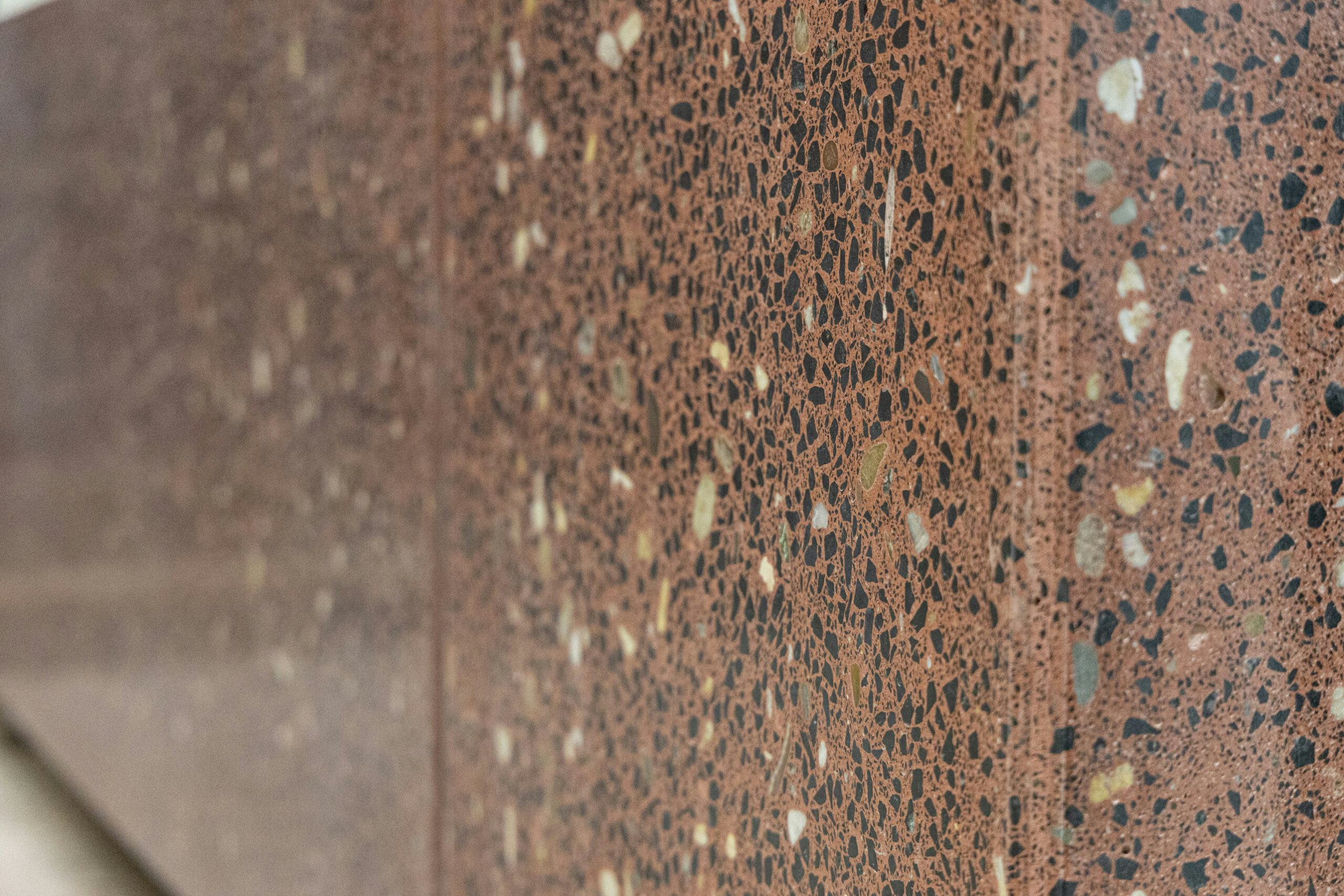 De elementen die Preco voor The Bridge Amsterdam levert, zijn onder meer balkons met gepolijste borstwering en gepolijste sandwichbetonnen gevels. “Betonpolijsten is een uniek proces waarbij onze machine betonnen oppervlakten omtovert tot spiegelgladde, duurzame elementen in iedere gewenste kleur. Denk aan het terrazzo van vroeger. Je kunt na het polijsten de natuurlijke structuur van de grindsoort goed zien.”