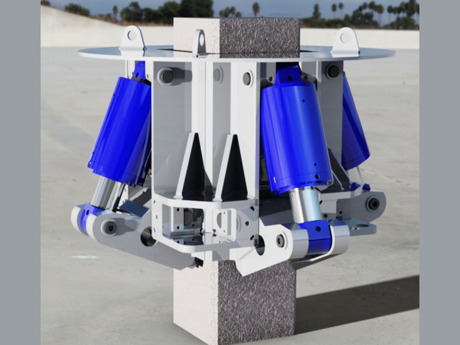 Vierkante prefab-betonpalen zijn op maat te kraken met de “poliepkraker”, die standaard op voorraad leverbaar is in drie modellen: