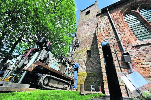 Nieuwe funderingspalen moeten het verzakken van de kerktoren op de hoogste terp van Europa tegengaan. Wassenaar Ingenieurs trok aan de noodklok, waarna eigenaar Stichting Alde Fryske Tsjerken het geld bij elkaar zocht om actie te ondernemen.