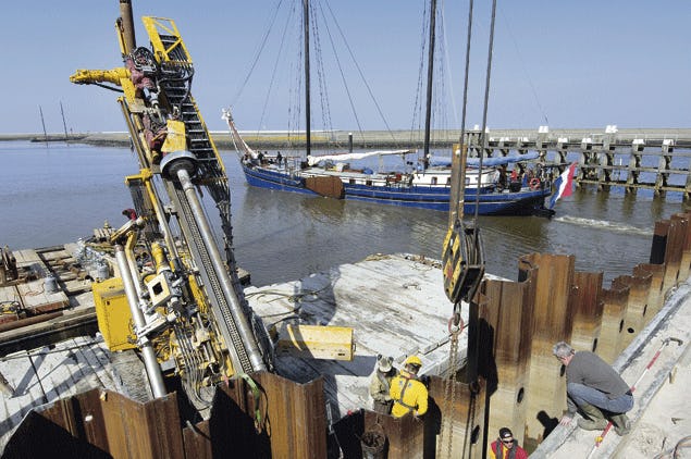 De werkzaamheden aan de nieuwe waterkering bij Harlingen vorderen gestaag