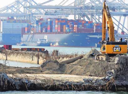 In de Amazonehaven op Maasvlakte-1 weerklinkt momenteel dagelijks een zware dreun. Explosievenexperts blazen elke dag een stuk van de 1 kilometer lange Swarttouw-diepzeekade op met dynamiet. Een unicum in de wereld.
