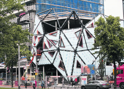 Sorba Projects bouwt uit zestig unieke elementen een volledig koperen gevel op voor de nieuwe Pauluskerk in Rotterdam. Die heeft dezelfde grillige diamantvorm als het aanpalende Calypso. Het totale project is ontworpen door architect William Alsop.