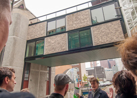 Filosoof Peter Harteloh organiseert in Rotterdam filosofische stadswandelingen langs architectonische hoogstandjes. De "worsteling in een dynamiek van vraag en antwoord met grote stadsarchitectuur" moet leiden tot bewustwording van onszelf in relatie tot de omgeving.