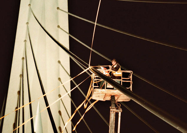 Apetrots was Rotterdam toen vijftien jaar geleden koningin Beatrix de Erasmusbrug openstelde voor het verkeer. Totdat twee maanden later een stevige bries opstak en 'De Zwaan' begon te slingeren.