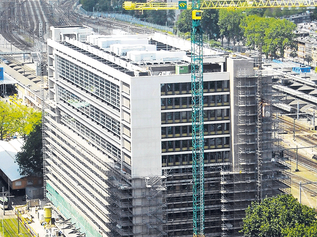 Het voormalige PTT-postsorteercentrum naast Rotterdam CS heeft sinds kort zijn dak weer terug. Dura Vermeer hees de afgelopen maanden zeven nieuwe verdiepingsvloeren het van boven opengewerkte wederopbouwmonument in.