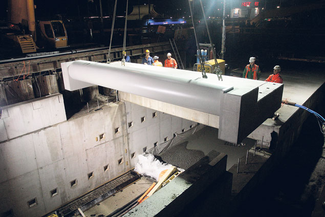BAM Civiel heeft het kopstuk ingehesen van het dak van de tweede Weenatunnel in Rotterdam.