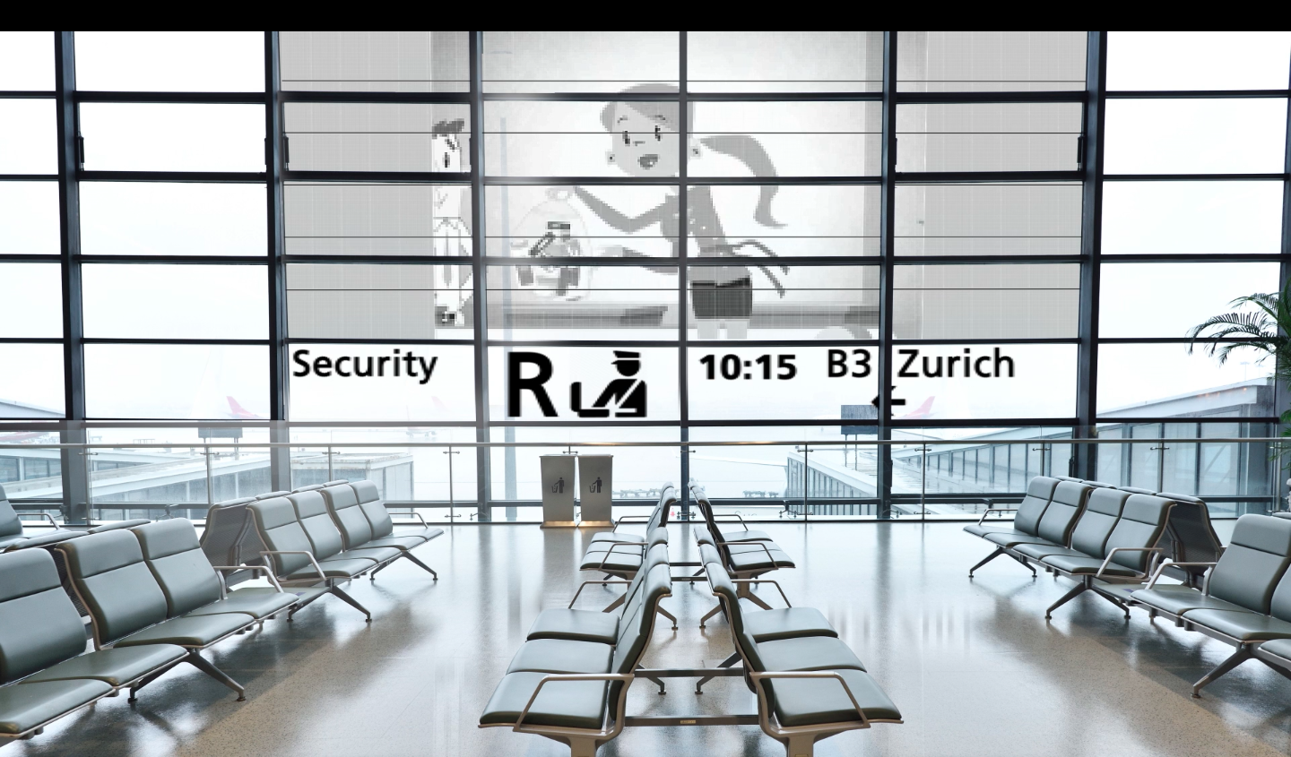 Op het glas van de vertrekhal van Rotterdam The Hague Airport kun je sinds kort de videogame Pong spelen of een gedicht lezen. Het tintbare glas is gesegmenteerd in pixels, waardoor content kan worden vertoond die als zonwering fungeert. De bedenkers noemen het een moderne versie van glas-in-lood.