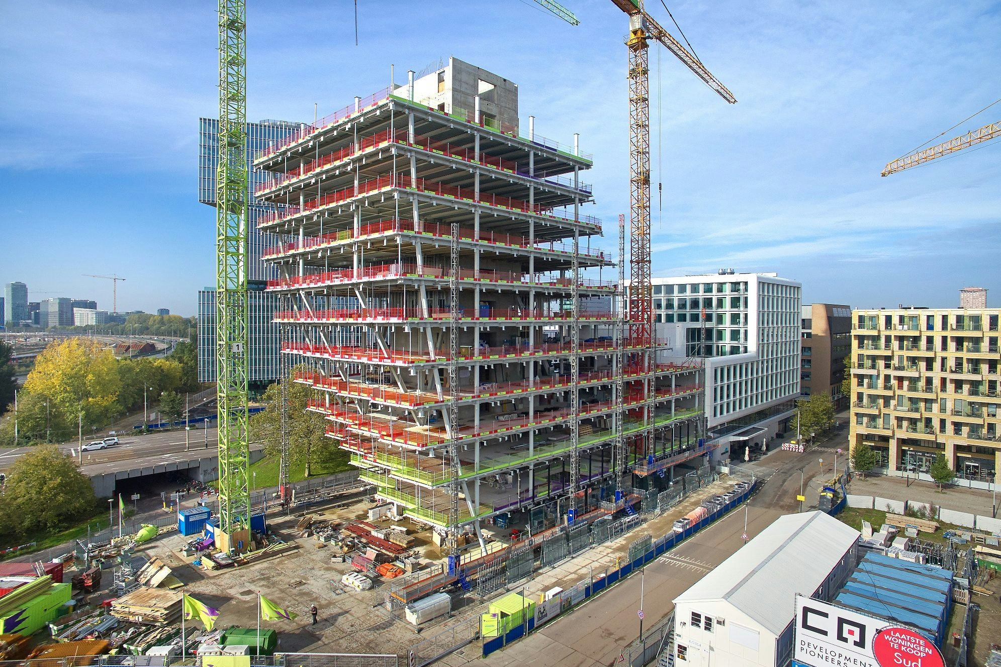 De Zuidas krijgt er een gebouw bij dat oogt alsof het ieder moment voorover kan vallen. Op het verste punt kraagt de Terrace Tower liefst zestien meter uit. De balanceeract is mogelijk dankzij ingenieus staal, superlichte vloeren en een laagbouw die fungeert als contragewicht.