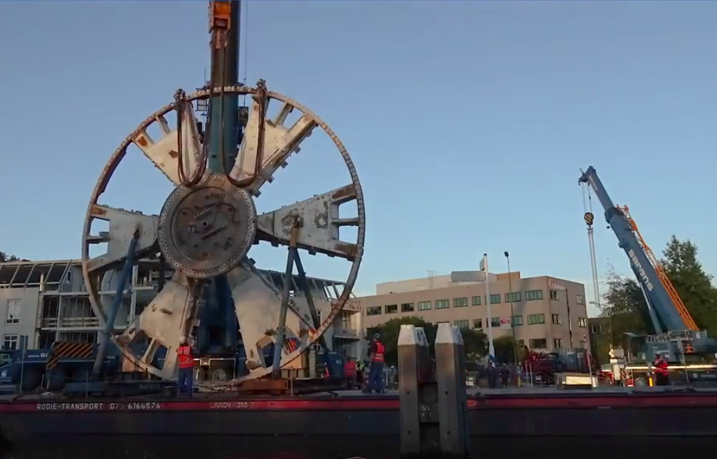 De kop van de tunnelboormachine die de Victory Boogie Woogietunnel graaft, ging afgelopen week terug naar de startschacht aan de Vlietzone. Een timelapse video toont hoe het bontgekleurde graafwiel door de Haagse wateren vaart.