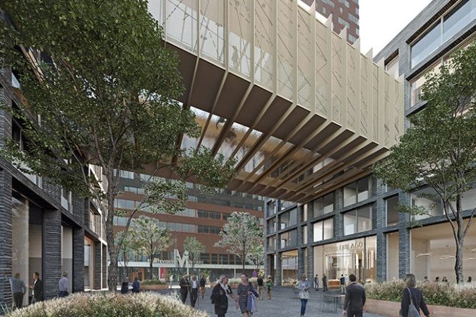 Een van de laatste vrije plekjes op de Rotterdamse Wilhelminapier moet plaats maken voor een nieuw bouwwerk: Hotel Chicago. Het gebouw trekt vooral de aandacht door zijn zwevende zwembad. Dat verbindt de twee gebouwdelen met elkaar.