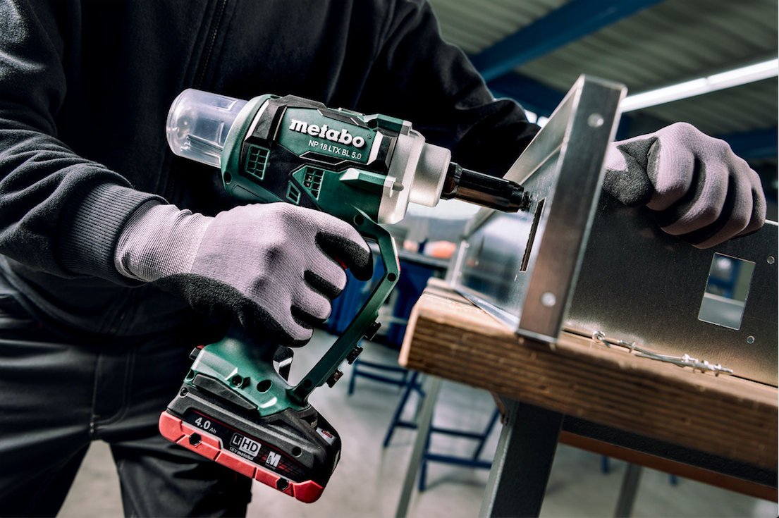 Metabo presenteert een nieuw accu-klinknagelpistool dat volgens de gereedschapsfabrikant twee maal zo snel is als vergelijkbare machines. Per klinknagel heeft de snoerloze en borstelloze NP 18 LTX BL 5.0 slechts een seconde nodig. Dat gebeurt zonder persluchtmachine.