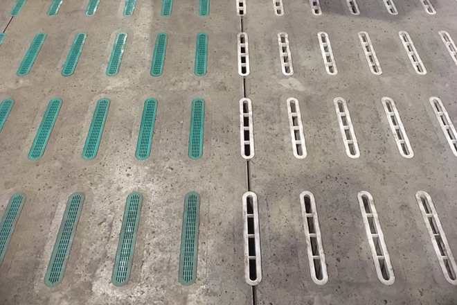 Betonnen roostervloeren kampen vaak met snel afbrokkelen van randen, maar Swaans Beton heeft er wat op gevonden. De nieuwe gepatenteerde FlexiFlor is uitgerust met verzonken gleuven. Die zijn ongevoelig voor beschadiging door bijvoorbeeld een shovelbak.