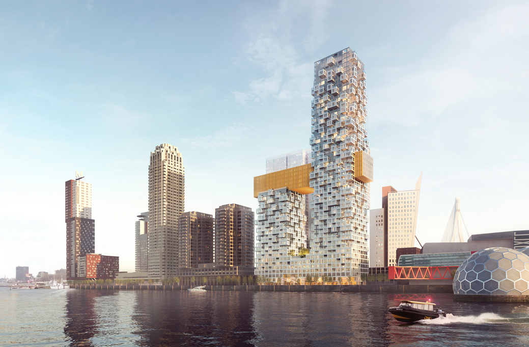 Het Rotterdamse architectenbureau MVRDV levert het ontwerp voor het dubbele torencomplex Sax. Het woning- en hotelproject is het laatste grote project aan de zuidzijde van de Wilhelminapier.