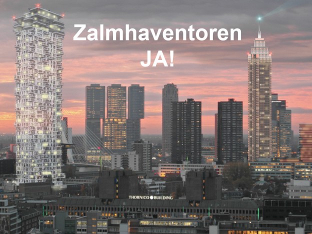 Publieksplatform RTM-XL begon een petitie voor de bouw van de 218 meter hoge Zalmhaventoren bij de Rotterdamse Erasmusbrug. De hoogbouwliefhebbers passeerden weldra de tegenpetitie van buurtbewoners, die de kolos niet in hun achtertuin willen, juicht Dirk Schennink.