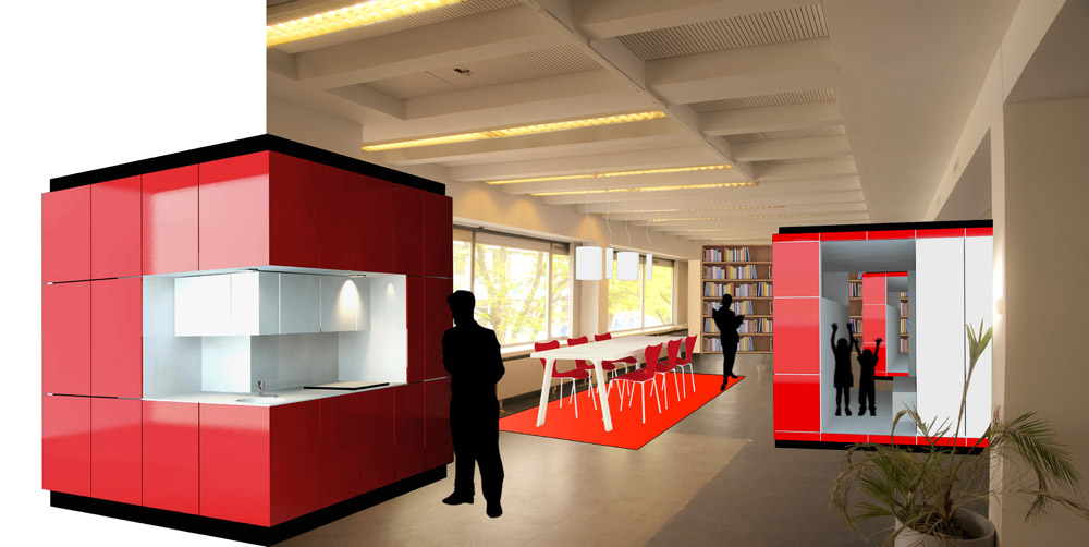 Leegstaande kantoren zijn met modulaire units snel om te toveren in woningen. Een 'slaaphub' en een keuken/badkamerunit geven sinds deze week een afgedankt kantoor van woningcorporatie Havensteder tijdelijk een nieuwe functie.