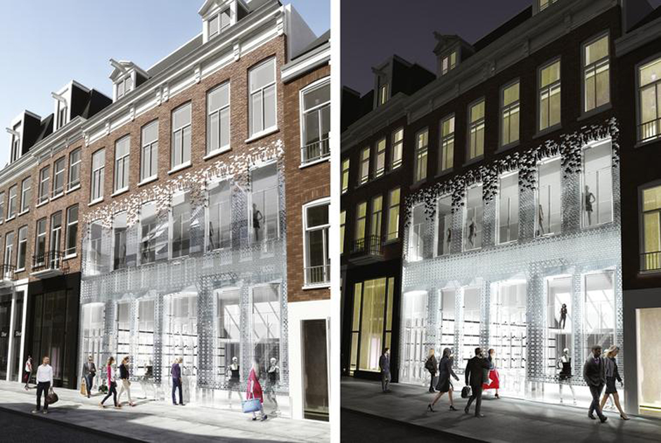 Een monumentale winkelgevel in de PC Hooftstraat is met een rigoureuze ingreep vrijwel volledig transparant gemaakt. Vervanging van de originele bakstenen door glas levert een tien maal sterkere constructie op, blijkt uit proeven van de TU Delft.