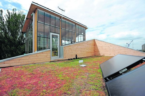 Bewoners van de nieuwste woning in proefhuizendorp Concept House Village krijgen geen energierekening, ze betalen alleen huur voor de installaties. Het houten bouwwerk kan zelf alle energie opwekken. De auto wordt opgeladen aan een lantaarnpaal.