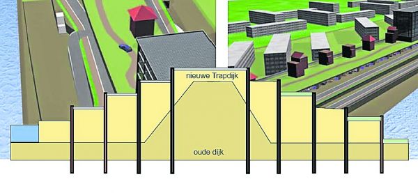 Rotterdam krijgt de eerste innovatieve trapdijk, bedacht door het gemeentelijke ingenieursbureau. Opname in het dijklichaam van onder meer een parkeergarage kan met behoud van stabiliteit en is ruimtebesparend.