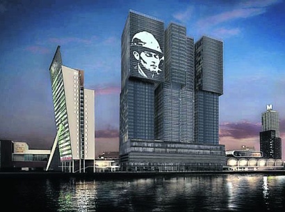 De ontwikkelaars van gebouw De Rotterdam (MAB Development/OVG Projectontwikkeling) projecteren tot eind 2013 met kunstproducent Mothership beelden op de 150 meter hoge gevel. De Rotterdam TV is een cadeautje voor de stad, vertelt Vanessa Westbroek (De Rotterdam TV).
