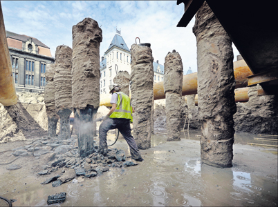 Pal achter het Rotterdamse stadhuis worden de koppen gesneld van het nieuwe Timmerhuis. Heijmans bouwt het gebouw, met daarin het nieuwe Stadskantoor, volgens een ontwerp van Rem Koolhaas' architectbureau OMA.