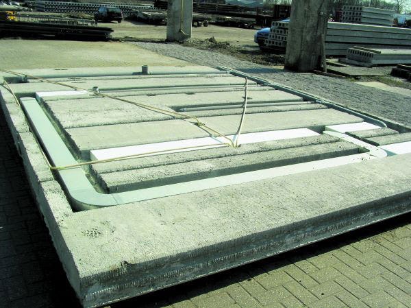 Op het tasveld van Betonson in Kampen ligt een voorbeeld van de nieuwe Plus Installatievloer met sleuven.
