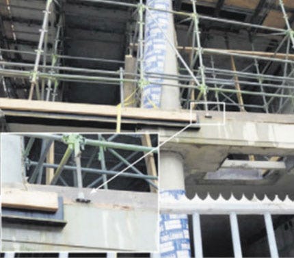 Alleen de staanders van de ondersteuningsconstructie voor de derde verdiepingsvloer van de laagbouw van de B-Tower waren correct geplaatst.