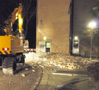 Koppen van de prefab kolommen en uiteinden van de prefab galerijplaten van appartementengebouw 'Cromme Acker Staete' in Voorthuizen zijn 'kapotgekrompen'. Om verlies van draagvlak te voorkomen, worden stalen kransen om de koppen aangebracht.