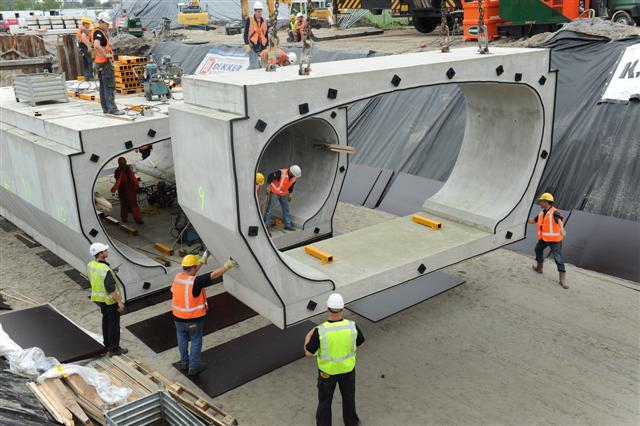 Een combinatie van Ooms Construction uit Avenhorn en Bouwbedrijf K. Dekker uit Krabbendam heeft afgelopen weekend een fietstunnel geplaatst onder de Westerweg (N242) bij de Westtangent in Heerhugowaard.