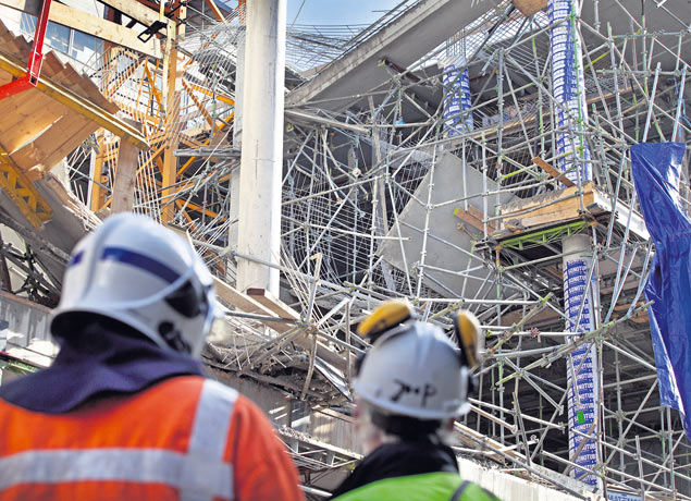 Het rapport over de instorting van het steigerwerk voor de laagbouw van de B-Tower in Rotterdam is gereed. Maar de inhoud wordt nog niet openbaargemaakt.