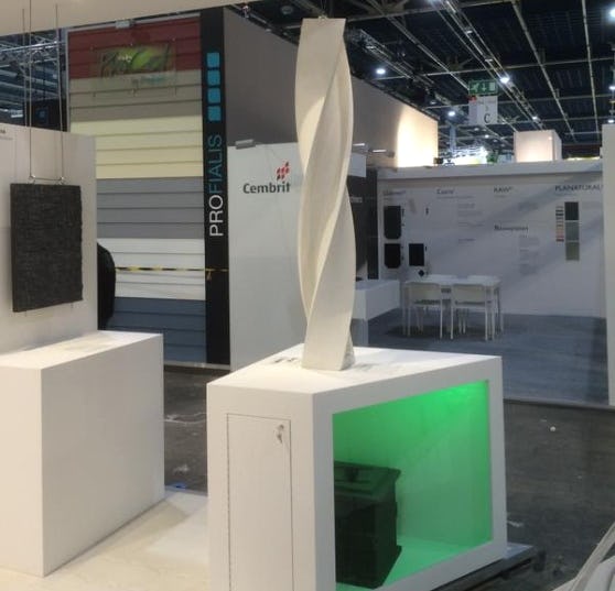 Bruil toonde op de vakbeurs Gevel (onderdeel van de Week van de Bouw) een getordeerd profiel van beton dat is gestort in een 3D-geprinte mal.
