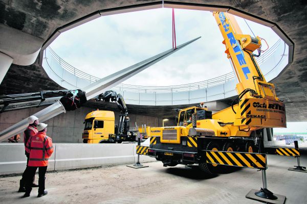 "Het zou een kompasnaald of een zonnewijzer kunnen zijn" zegt architect Gert-Jan de Jong over de roestvaststalen kolom die vorige week is geplaatst in het hart van de rotonde boven de N261 in Waalwijk. De naald is een van de beeldbepalende elementen van de tien kilometer lange 'Dreamport Lane'.