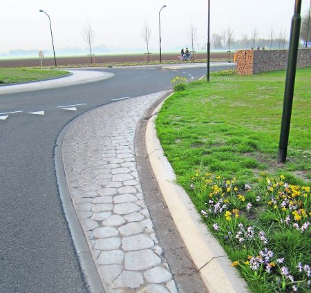 Met basaltblokken in gedachten heeft Betonfiguratie een nieuwe mat ontwikkeld voor de uitvoering van printbeton. Een timmerman heeft maanden gewerkt aan de houten mal waarin de mat van flexibel polyester wordt gegoten. ''Het is ons ontwerp, uitlenen of delen met andere aannemers doen we niet", aldus algemeen directeur Jan Oomen van Betonfiguratie.