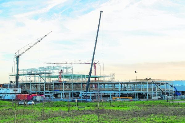De vloervelden van de nieuwbouw in Amersfoort voor woonwinkelketen Loods5 vormen een strak geheel. Dat komt door de toepassing van Deltabeam- staalbetonliggers met op de fle nzen opgelegde kanaalplaatvloerelementen. Het aantal kolommen is bovendien minimaal en het casco kon snel opgezet worden.