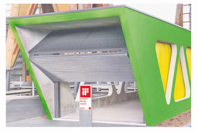 Beton Kemmler uit het Duitse Tübingen-Hirschau heeft een prefab betonnen garagebox ontwikkeld met een verrassende vorm en kleur.