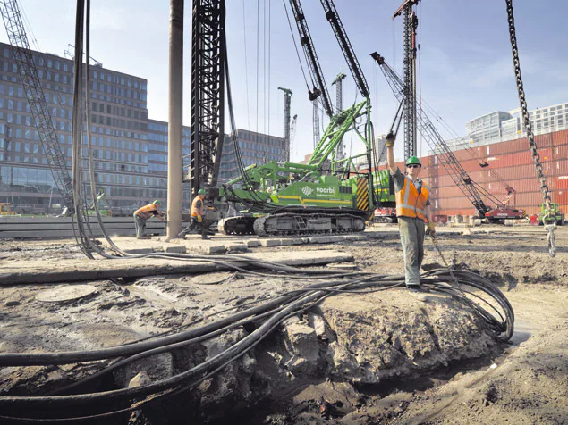Voorbij Funderingstechniek voert 2270 vibro-combipalen uit voor de toekomstige overdekte markthal bij station Blaak in Rotterdam.